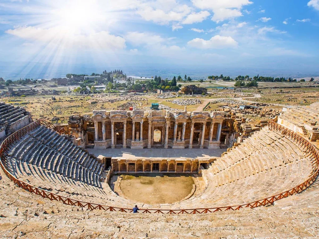 Located 18 km north of Denizli Province, the ancient city of Hierapolis was founded in the 2nd century BC by Eumenes II, King of Pergamon. It is said to have been named Hierapolis after Hiera, wife of Telephos, the legendary founder of Pergamon. Due to its location in an earthquake zone, the city was repeatedly destroyed by earthquakes and rebuilt.